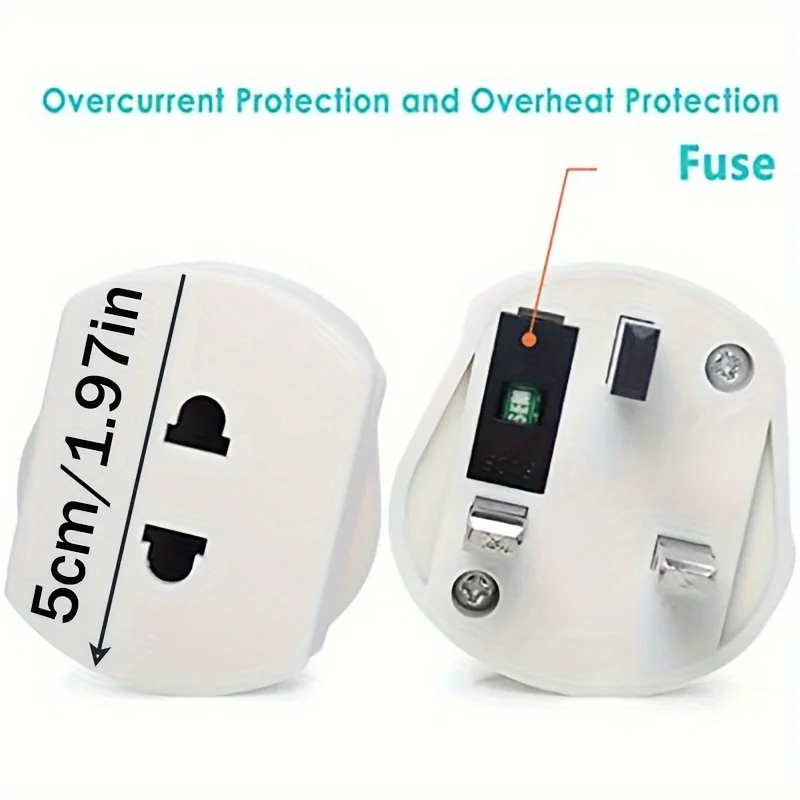 🌍 What is it - The ultimate solution for travelers! Our US to UK Plug Adapter easily converts 2-pin plugs to 3-pin configurations, ensuring you can charge your devices anywhere in the UK with no hassle. With a built-in fuse for enhanced safety, this portable accessory is your perfect travel companion.